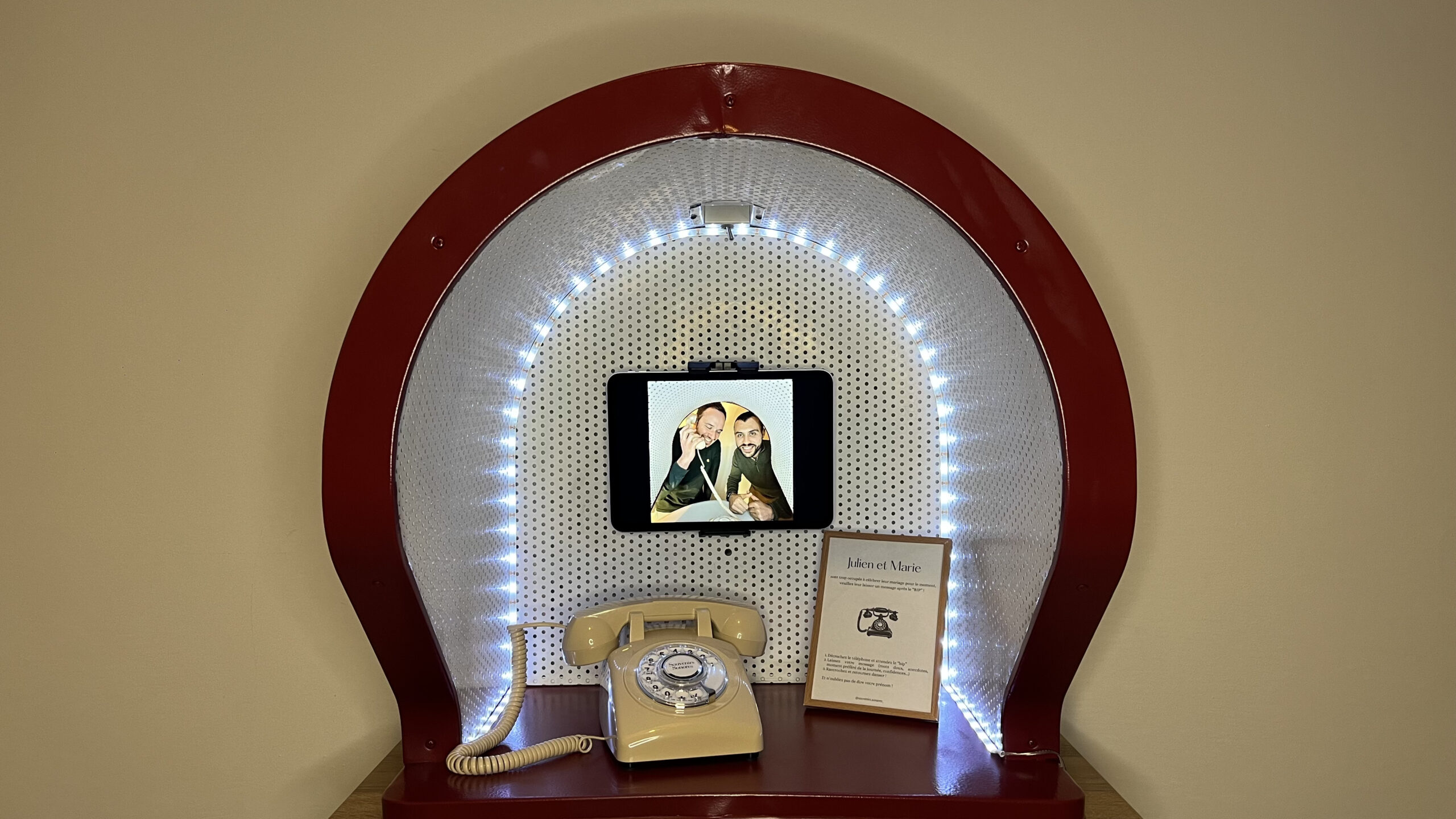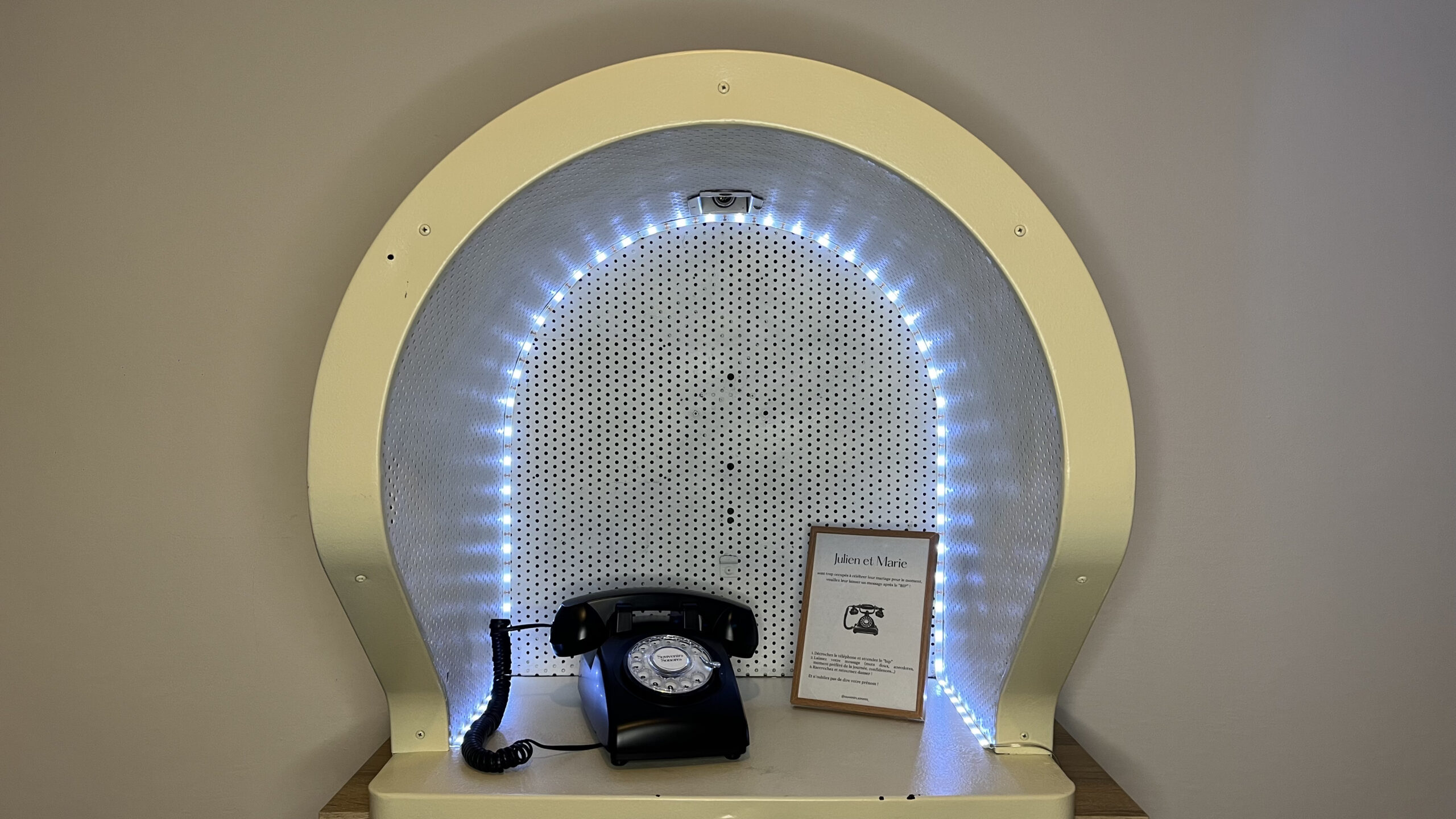 À l’intérieur de la cabine, vos proches peuvent enregistrer des messages audio ou vidéo dans un cadre insolite, élégant et chaleureux.